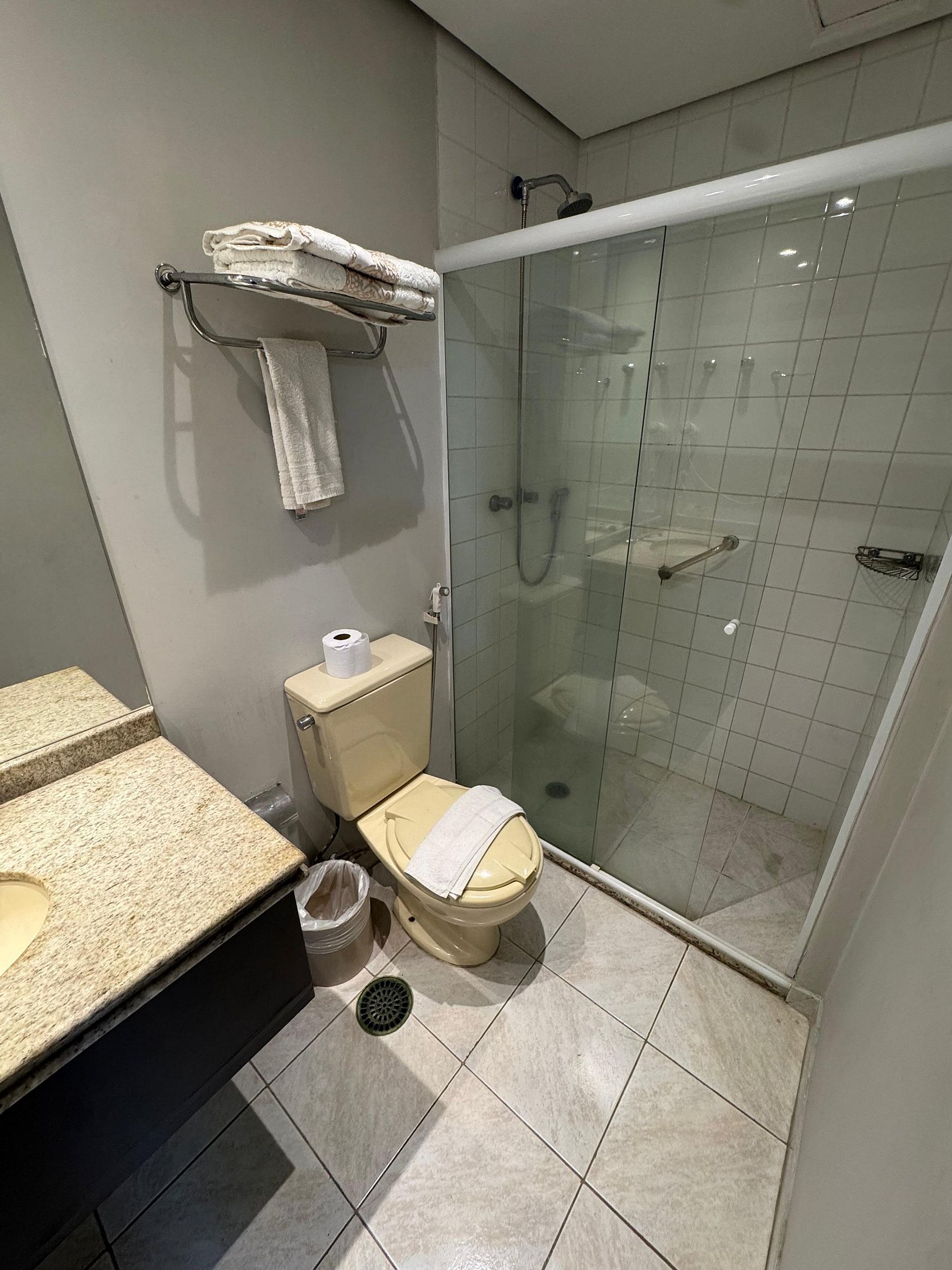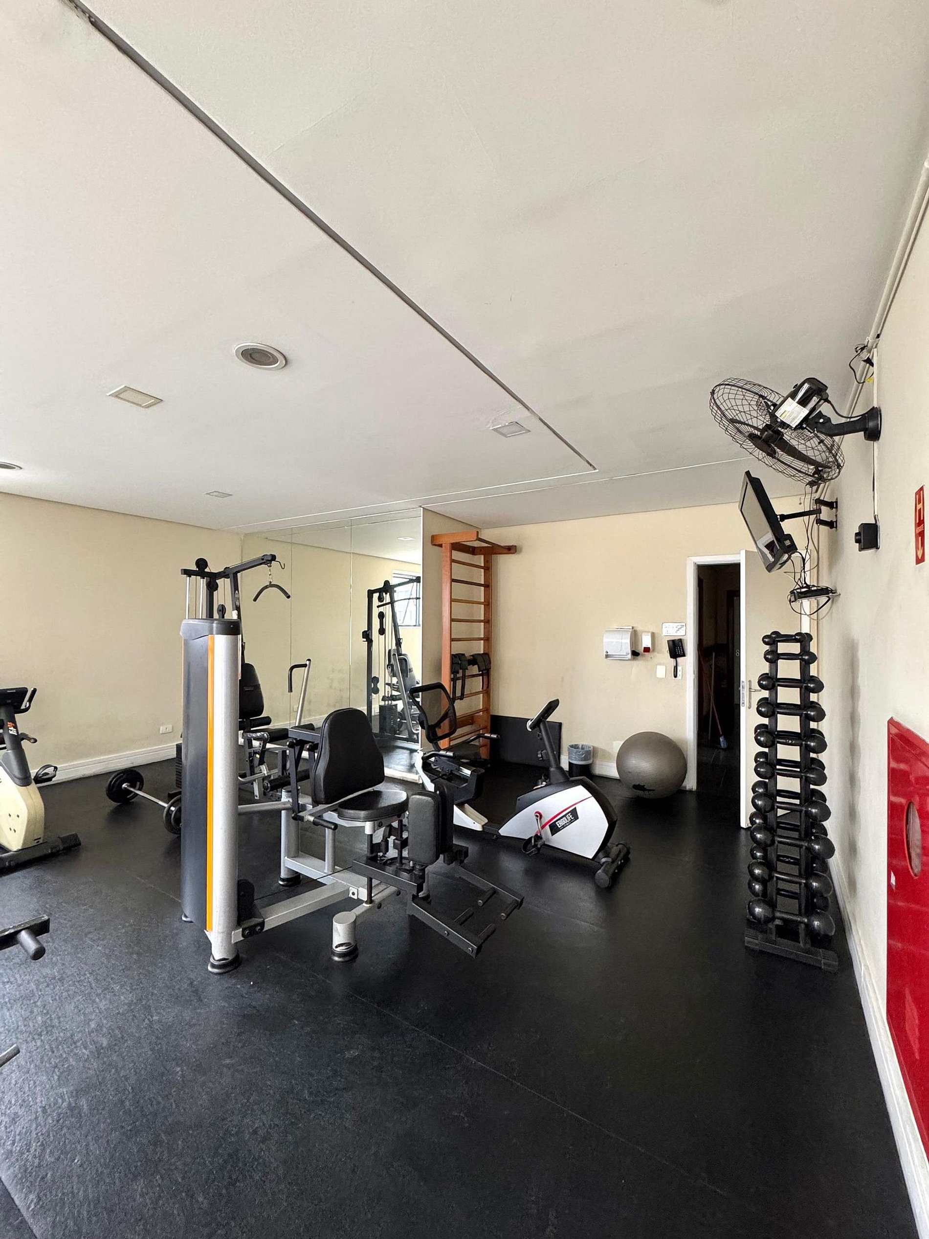 O edifício oferece recepção 24h, piscina, sauna, academia e restaurante, proporcionando praticidade e bem-estar durante toda a estadia.