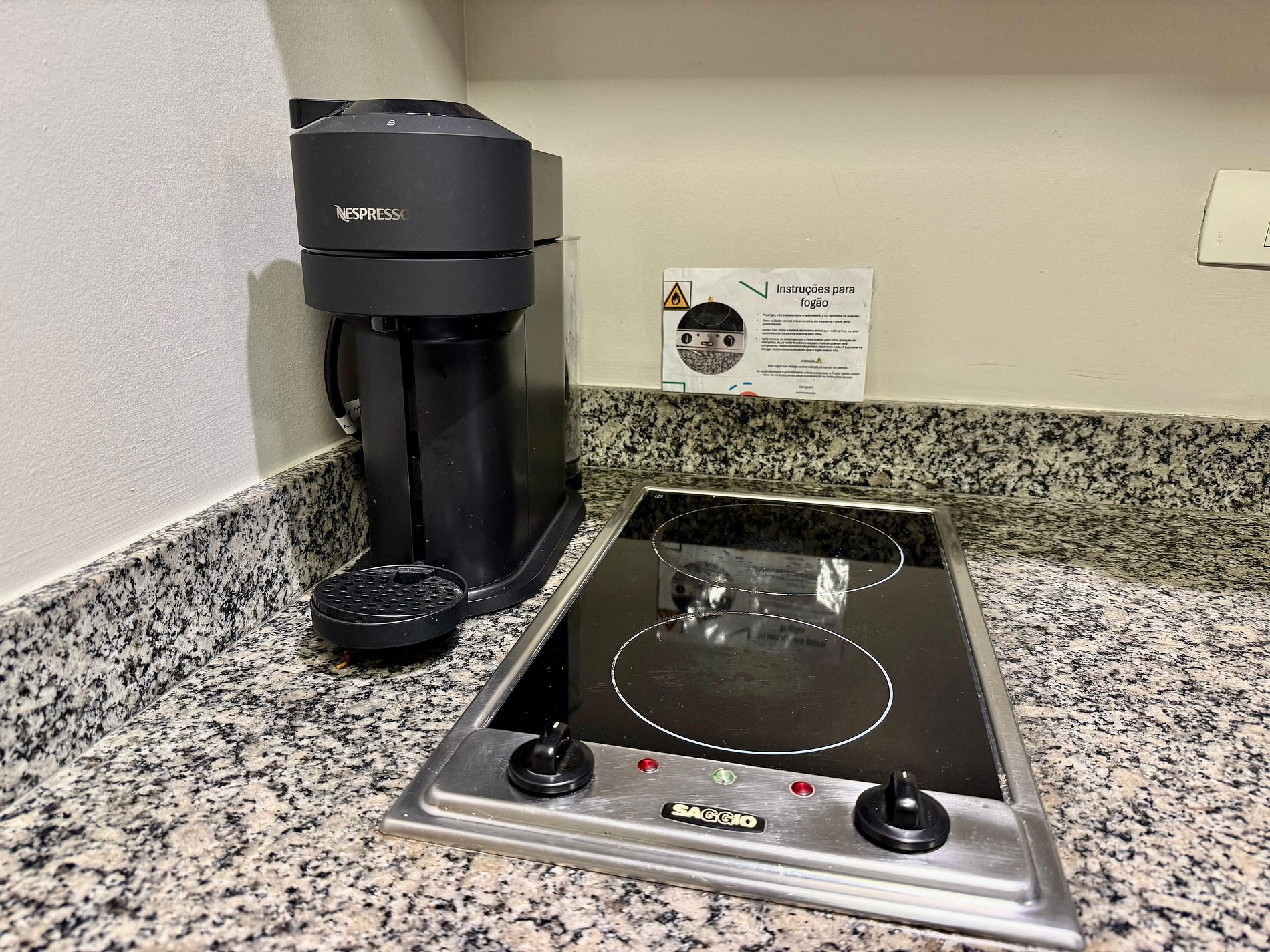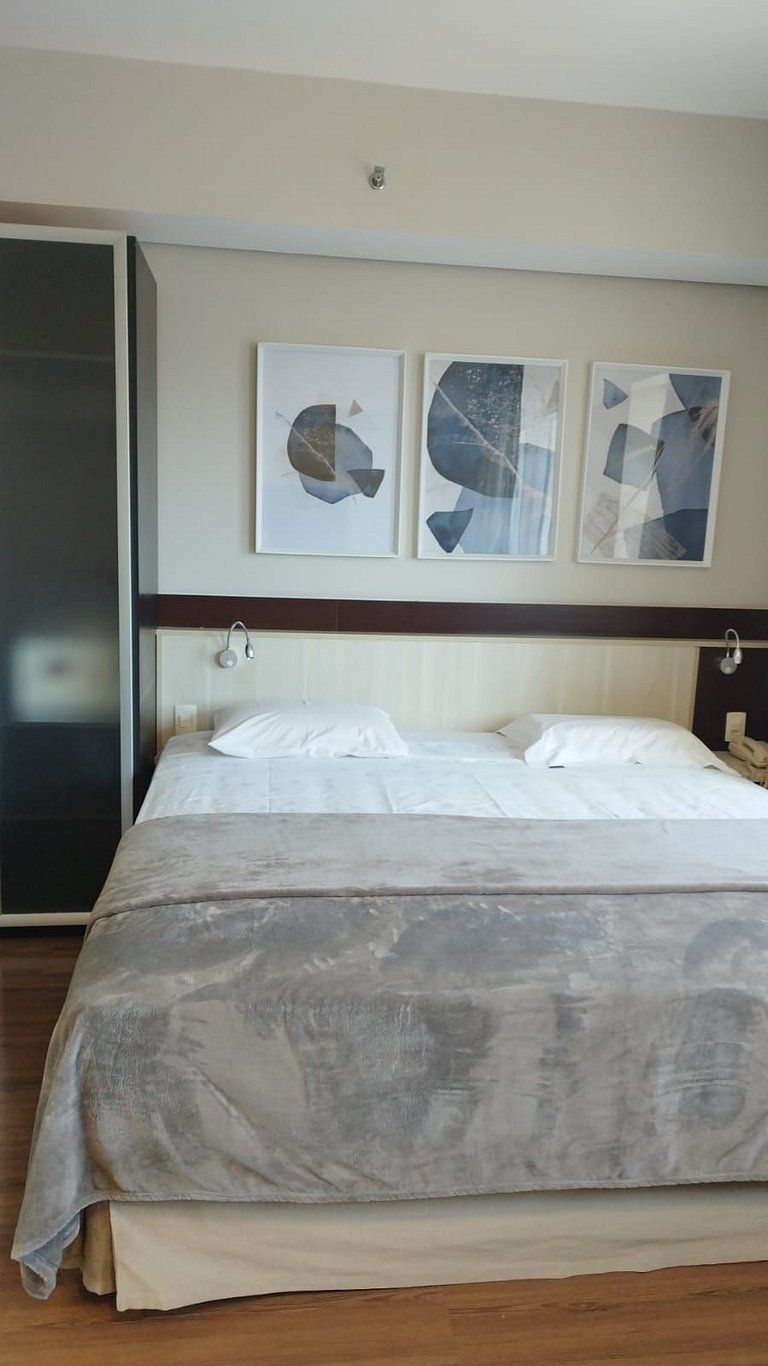 Cozinha equipada com: - Fogão cooktop 2 bocas - Cafeteira de cápsulas - Sanduicheira- Frigobar TV Smart 50" Ar-condicionado Vaporizador para roupas Serviços e estrutura do hotel: - Recepção 24h - Arrumação diária inclusa - Piscina - Academia - Sauna Número de hóspedes: 3 Quartos: 1 Camas: 2 (1 casal + 1 solteiro) Banheiros: 1 Auto check-in23:30:00 hrs Regras da casa: Sem festas, sem animais (, silêncio após 22h até 9:00hrs Check-in/out: check-in a partir das 14h, check-out até 11h