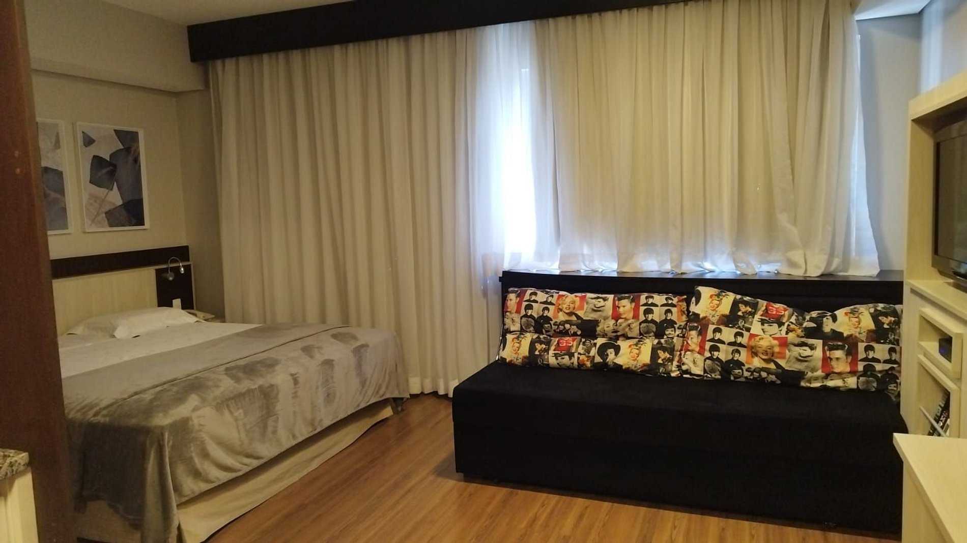 Cozinha equipada com: - Fogão cooktop 2 bocas - Cafeteira de cápsulas - Sanduicheira- Frigobar TV Smart 50" Ar-condicionado Vaporizador para roupas Serviços e estrutura do hotel: - Recepção 24h - Arrumação diária inclusa - Piscina - Academia - Sauna Número de hóspedes: 3 Quartos: 1 Camas: 2 (1 casal + 1 solteiro) Banheiros: 1 Auto check-in23:30:00 hrs Regras da casa: Sem festas, sem animais (, silêncio após 22h até 9:00hrs Check-in/out: check-in a partir das 14h, check-out até 11h