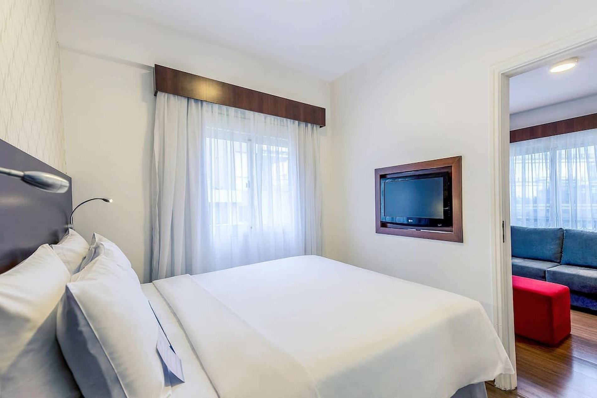 Os hóspedes contam com acesso a estrutura completa do hotel, incluindo recepção 24h, arrumação diária, academia, piscina e lavanderia. A localização também é um diferencial: a poucos passos do Shopping JK Iguatemi, próximo ao Hospital São Luiz, parques e vias importantes da cidade.