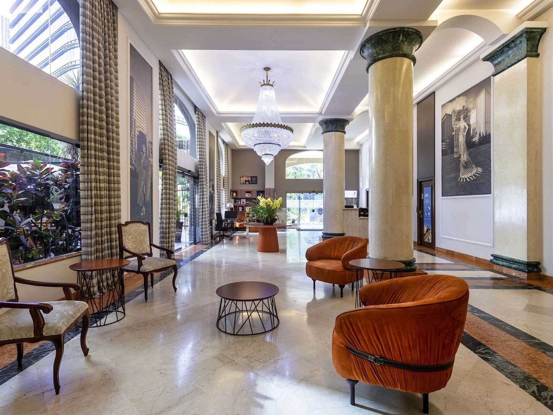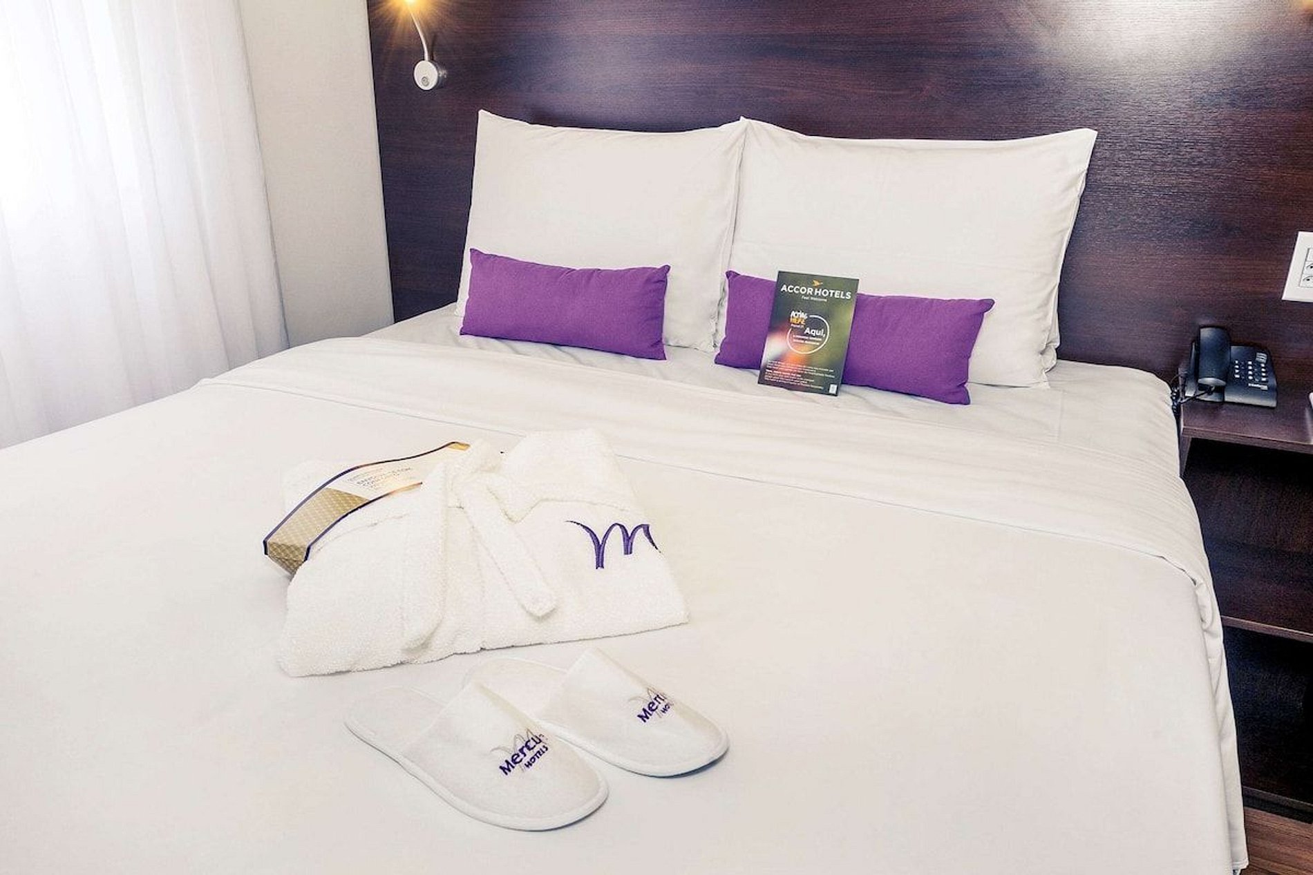 O check-in é realizado diretamente na recepção do hotel Mercure São Paulo JK.